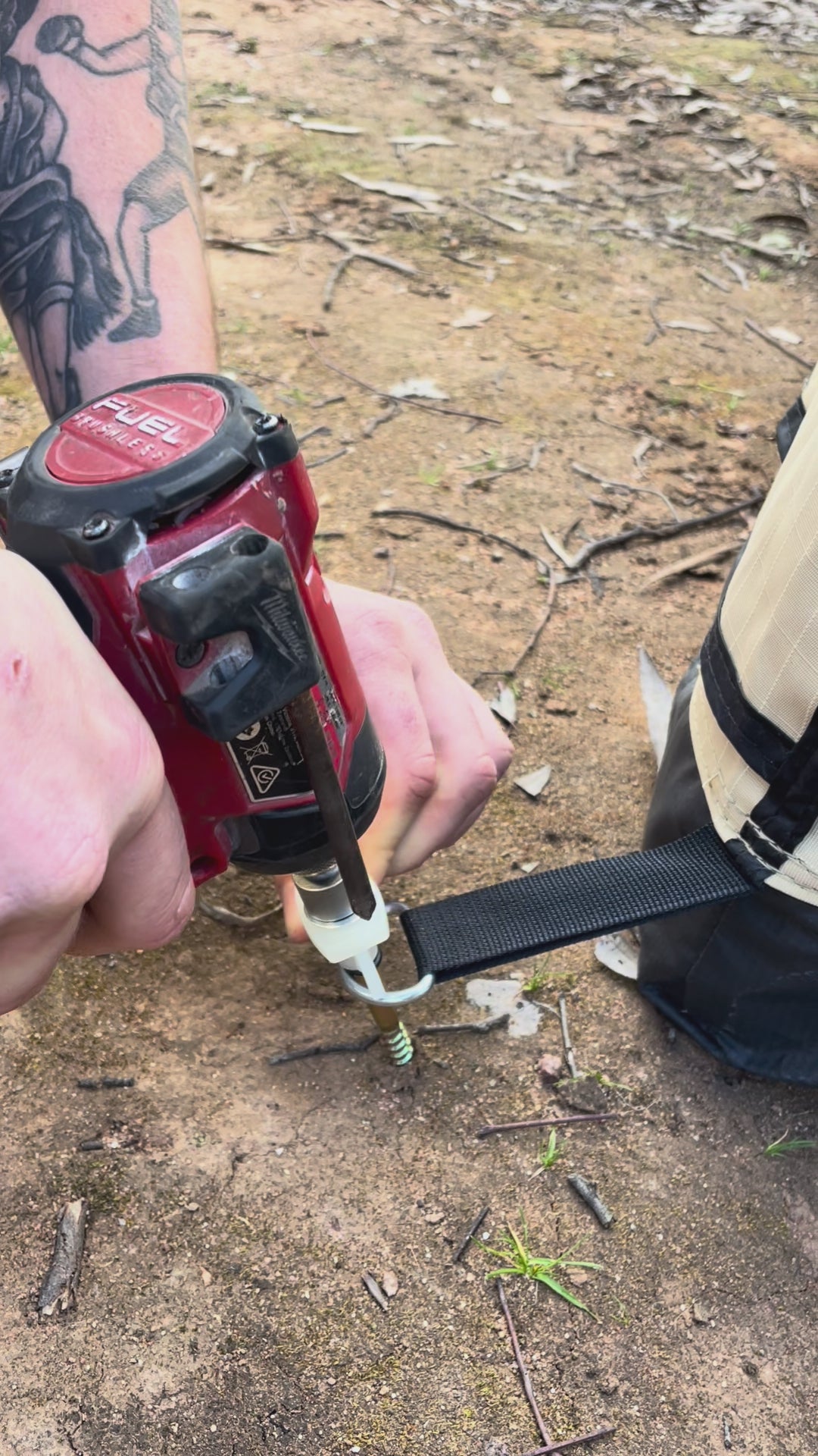 16 piece Glow in the Dark screw-in tent peg set consisting of 14 x heavy duty 205mm x glow in the dark Galvanized pegs, 1 x 13mm socket, & 1 x handy heavy-duty rollout Oxford bag.